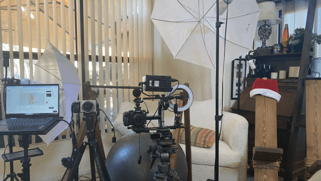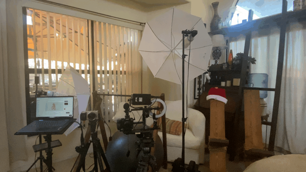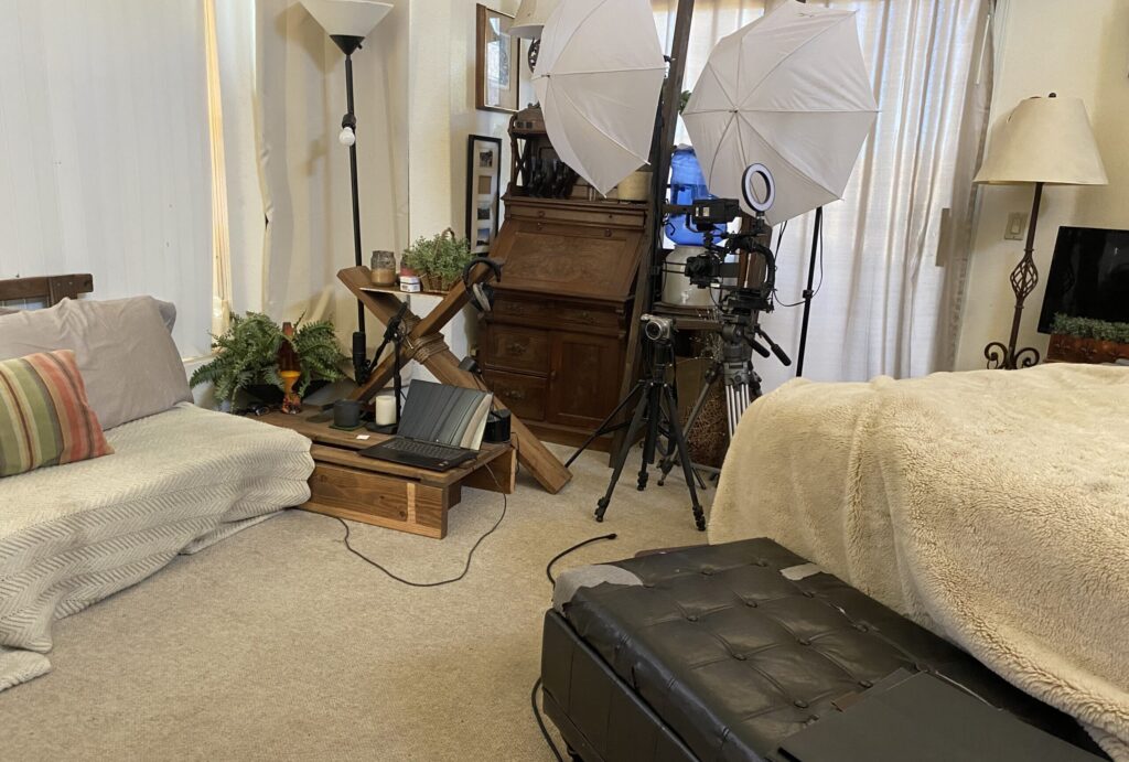 We use two professional cameras per shoot. Day shoots use natural lighting.